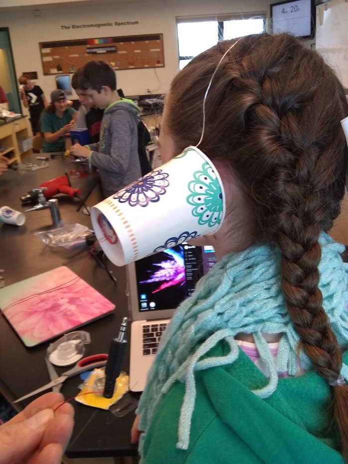 Wire, magnets, paper cups, pipe cleaners, and 3.5mm audio connectors – make your own set of headphones. A great project for the ear, electromagnetism, and workshops skills.