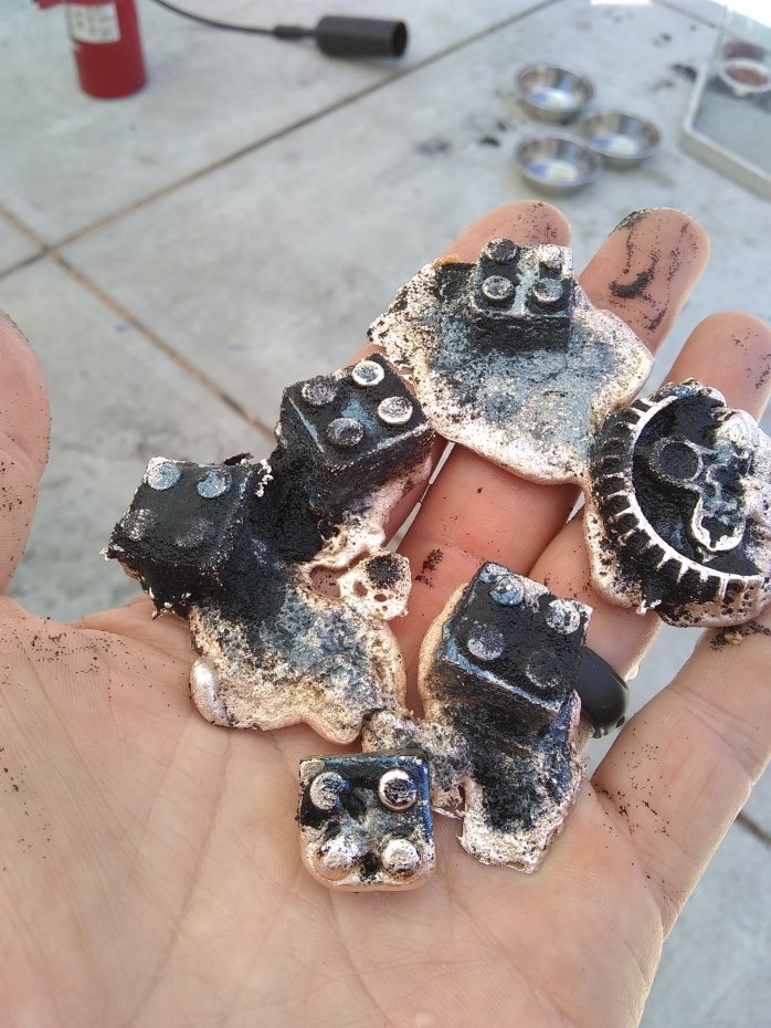 Not bad for a first attempt at casting silver Legos. The second batch made for nice keepsakes for the students at my camp.